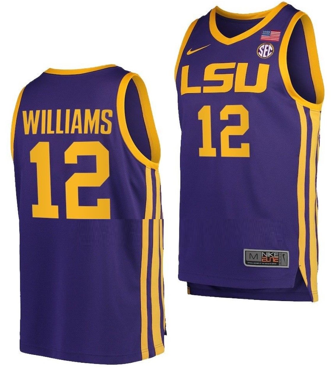 KJ Williams Jersey LSU Tigers College Basketball Purple #12