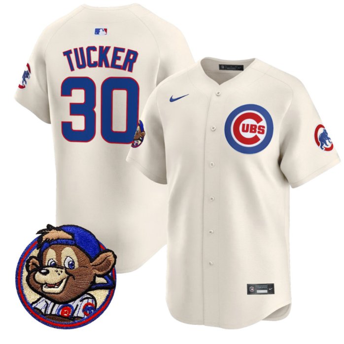 Kyle Tucker Jersey #30 Chicago Cubs Clark Patch Vapor Premier Limited Stitched Cream