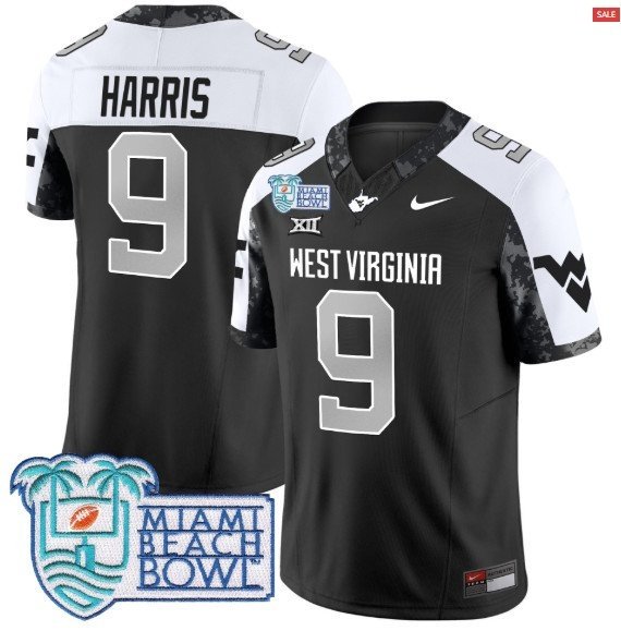 Major Harris #9 West Virginia Mountaineers 2025 Miami Beach Bowl Vapor Black Alt