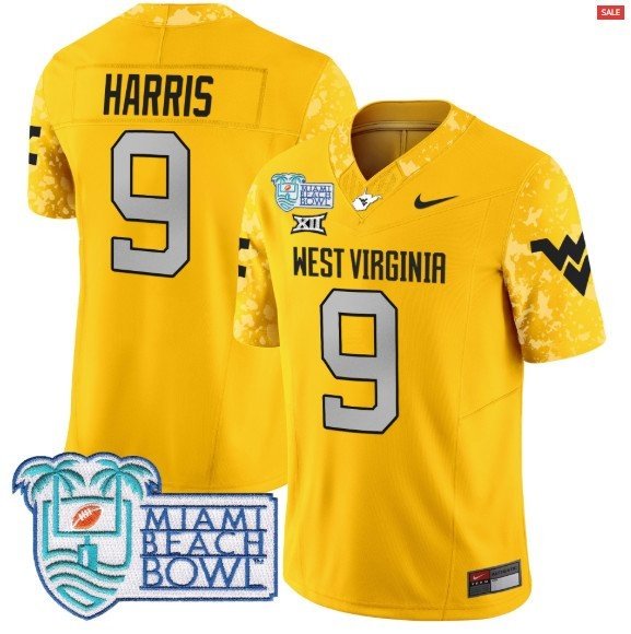 Major Harris #9 West Virginia Mountaineers 2025 Miami Beach Bowl Vapor Gold