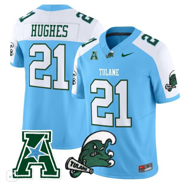 Makhi Hughes #21 Tulane Green Wave Home Vapor Patch Blue Alternate
