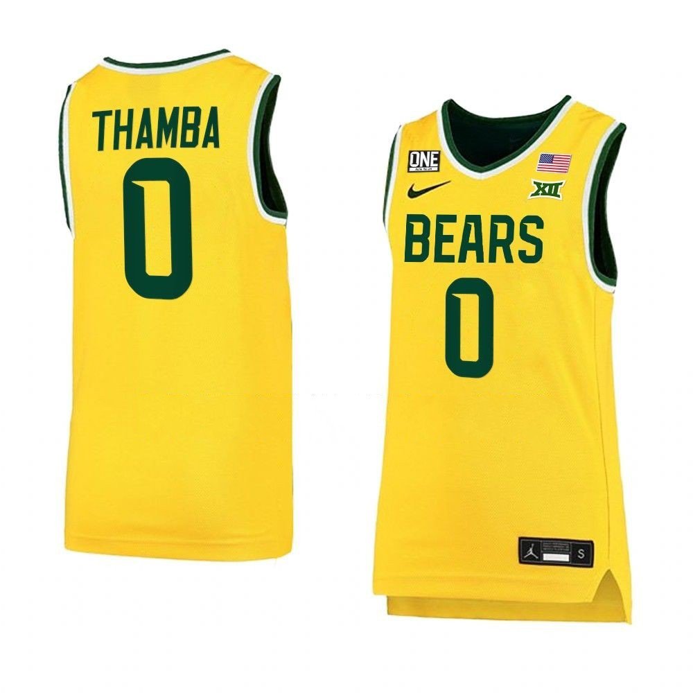 Men’s #0 Flo Thamba Jersey Baylor Bears College Basketball Jerseys Yellow