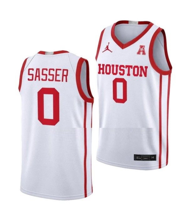 Men’s #0 Marcus Sasser Jersey Houston Cougars College Basketball Jerseys White Home