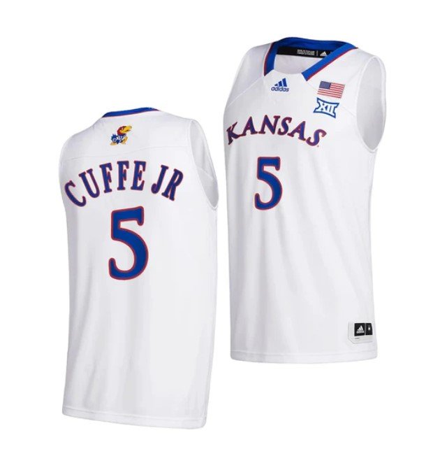 Men’s #5 Kyle Cuffe Jr Jersey Kansas Jayhawks College Basketball Jerseys White 2022