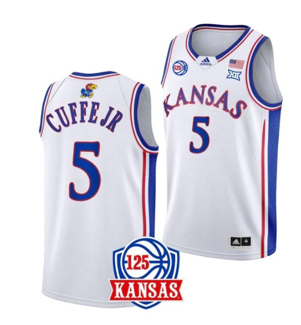 Men’s #5 Kyle Cuffe Jr Jersey Kansas Jayhawks College Basketball Jerseys White