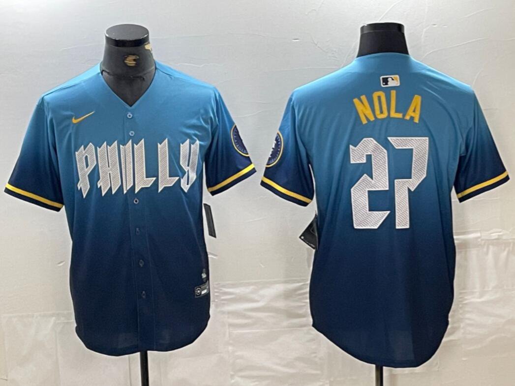 Men’s Aaron Nola #27 Philadelphia Phillies 2024 City Connect Limited Player Jersey Blue