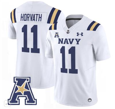 Men’s Blake Horvath Jersey #11 Navy Midshipmen Football – White, All Stitched