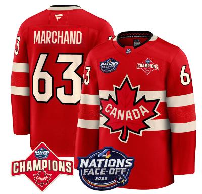 Men’s Brad Marchand Jersey #63 Canada 4 Nations Face-Off 2025 Champions Red