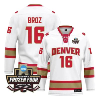 Men’s Denver University (D) NCAA Ice Hockey Tristan Broz Jersey #16 White