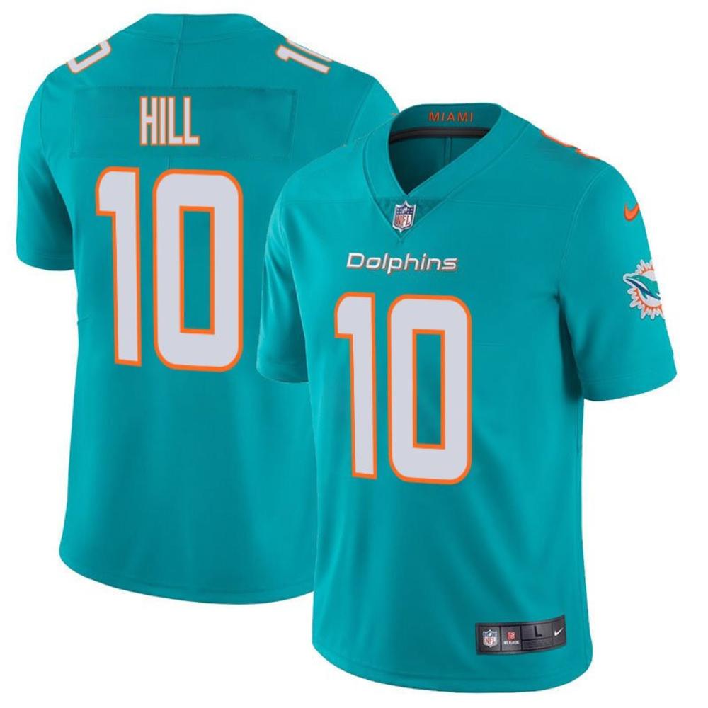 Men’s Dolphins 10 Tyreek Hill Aqua Stitched Limited Jersey