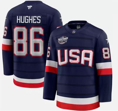 Men’s Jack Hughes Jersey #86 USA Navy 2025 4 Nations Face-Off Stitched