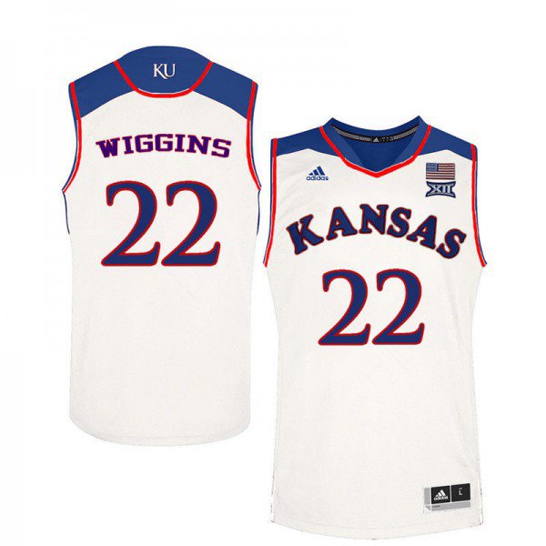Men’s Jayhawks #22 Andrew Wiggins Jersey White College Basketball Jerseys