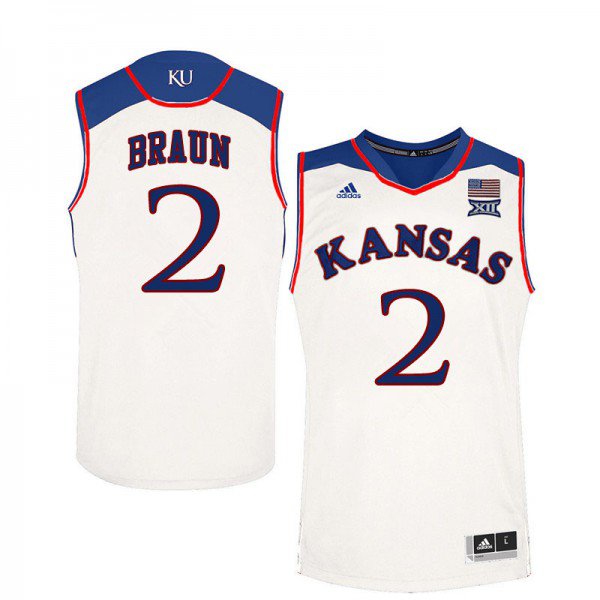 Mens Kansas #2 Christian Braun Jersey White High School College Basketball Jerseys