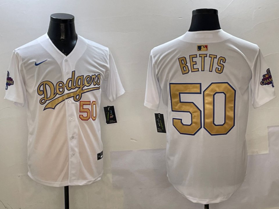Men’s Mookie Betts #50 Los Angeles Dodgers 2025 Gold Collection Limited Jersey White