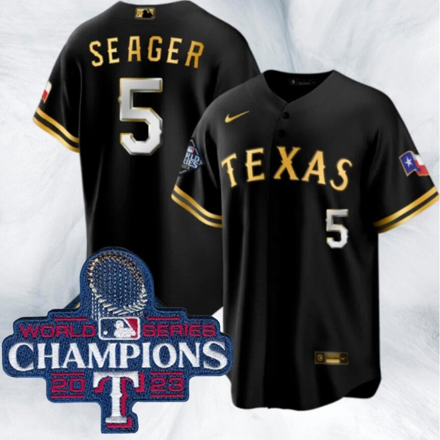 Men’s Or Youth Corey Seager #5 Texas Rangers 2023 World Series Champions Jersey Black Gold Christmas Gift