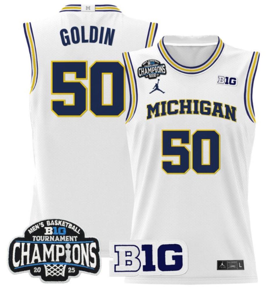 Men’s Vladislav Goldin Jersey #50 Michigan Wolverines 2025 Big Ten White