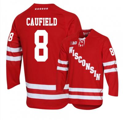 Men’s Wisconsin Badgers #8 Cole Caufield Red Hockey Jersey