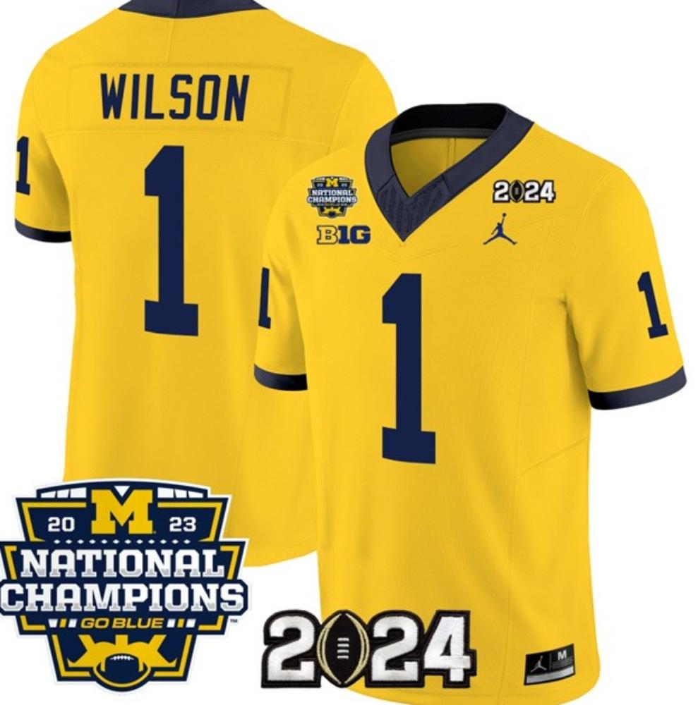 Men’s Wolverines 1 Roman Wilson Yellow 2024 With 2023 National Champions