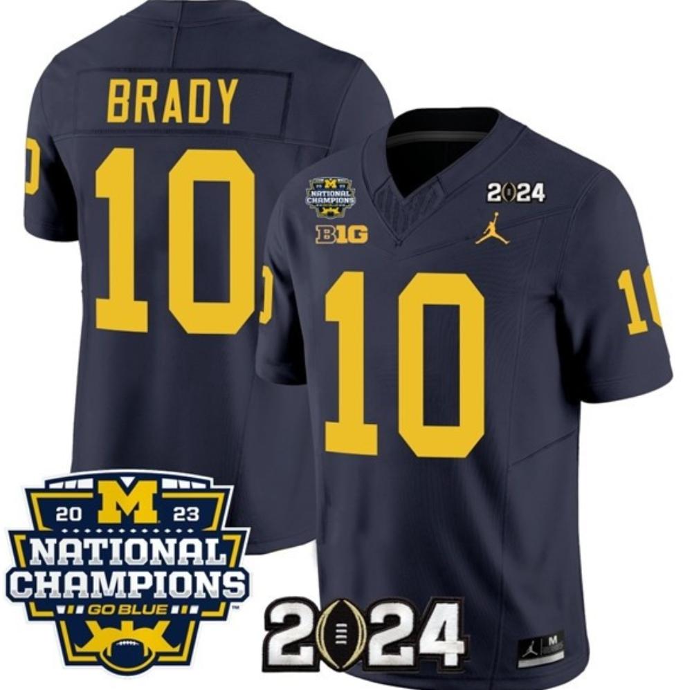 Men’s Wolverines 10 Tom Brady Navy 2024 With 2023 National Champions Jerseys