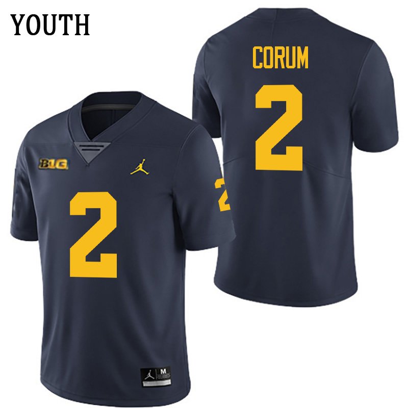 Michigan Wolverines 2 Blake Corum Navy Stitched Youth Jersey