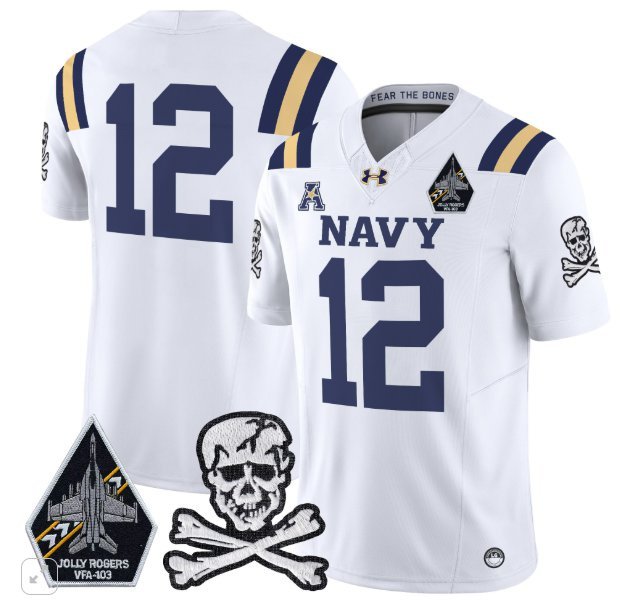 Navy Midshipmen Blank Name #12 Vapor Patch College White