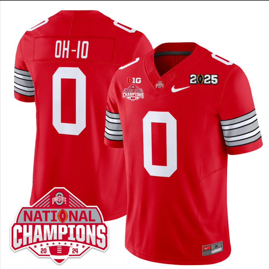 OH-IO Jersey #0 Ohio State 2025 CFP Patch National Champions Red