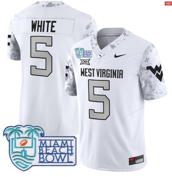 Pat White #5 West Virginia Mountaineers 2025 Miami Beach Bowl Vapor White