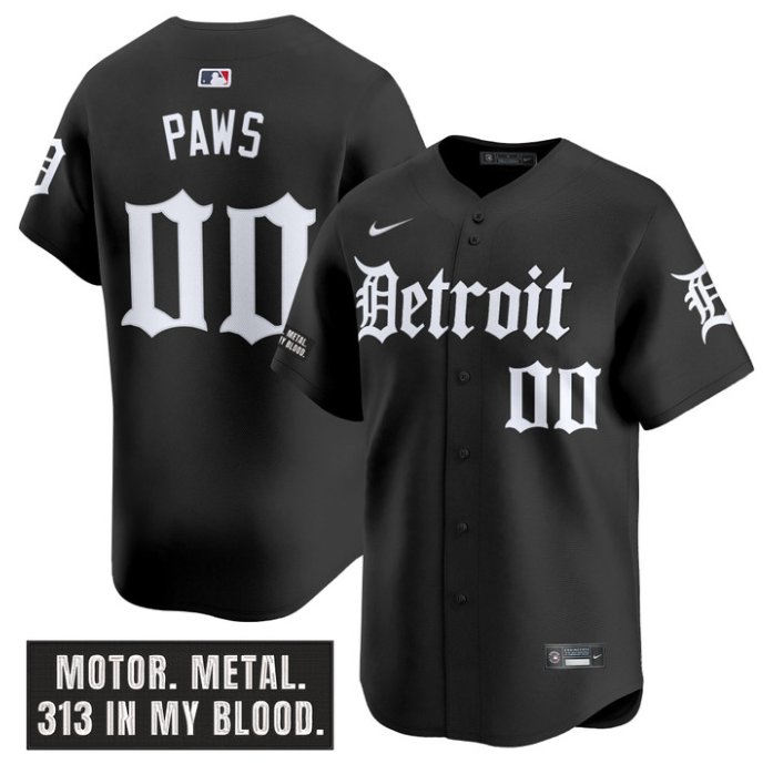 Paws Jersey #00 Detroit Tigers Motor Gothic Edition Vapor Limited Stitched Black
