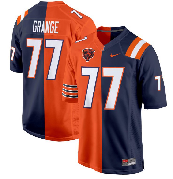 Red Grange #77 Illinois Fighting Illini Split Game Stitched