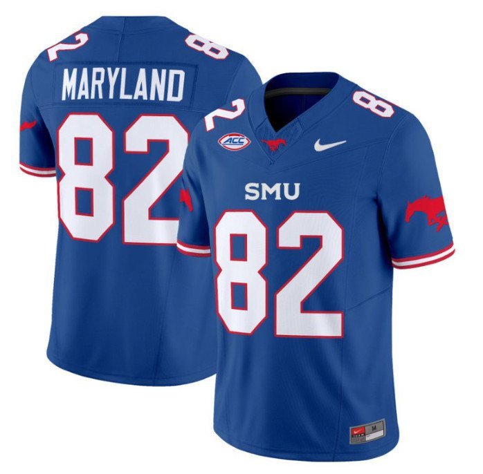 RJ Maryland #82 SMU Mustangs Icy Whites Vapor College Blue
