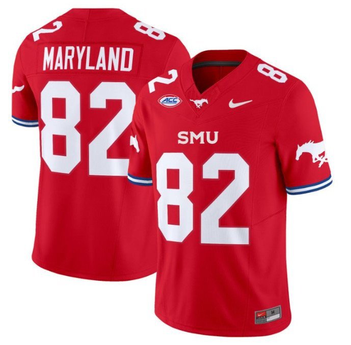 RJ Maryland #82 SMU Mustangs Icy Whites Vapor College Red