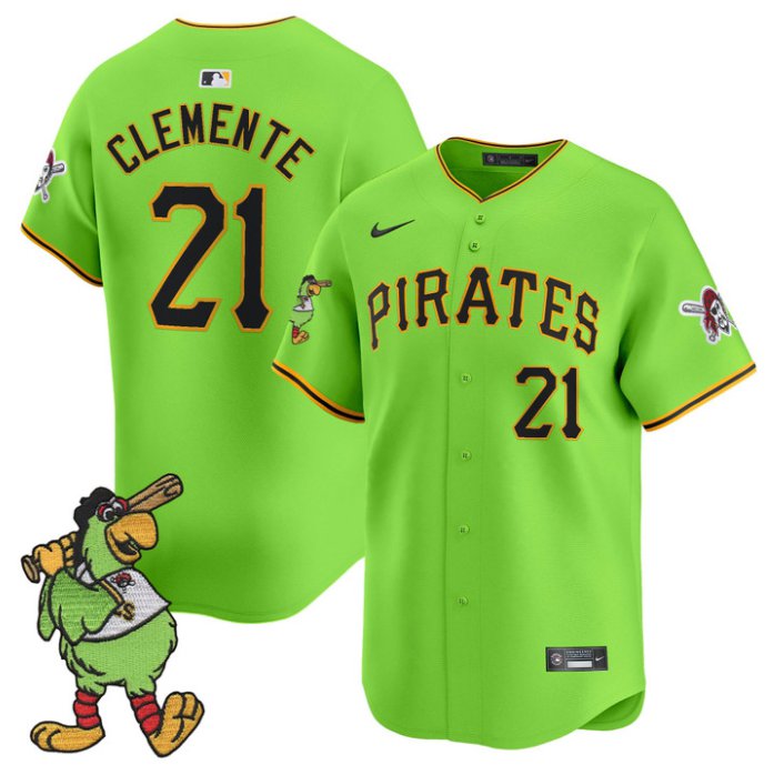 Roberto Clemente Jersey #21 Pittsburgh Pirates Pirate Parrot Patch Premier Limited Stitched Green