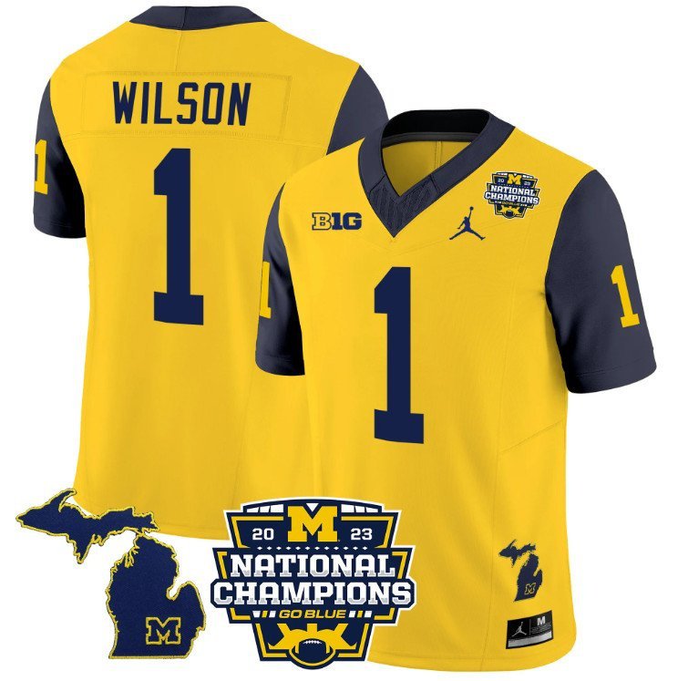 Roman Wilson #1 Michigan Wolverines National Champions Vapor Map Sleeves Navy