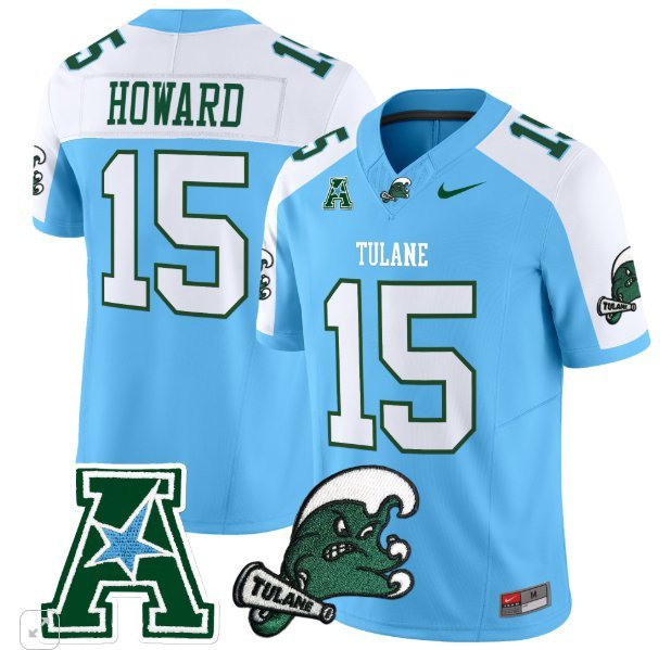 Sam Howard #15 Tulane Green Wave Home Vapor Patch Blue Alternate