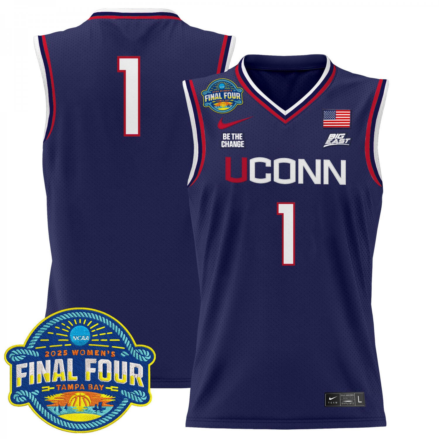 Team Jersey #1 UConn Huskies 2025 Big Eat Final Four Patch Stitched Navy