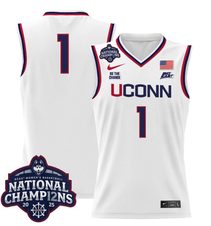 Team Jersey #1 UConn Huskies 2025 National Champions Patch Stitched White
