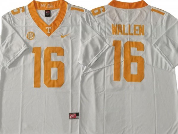 Tennessee Volunteers 16 White Football Jersey – Morgan Wallen