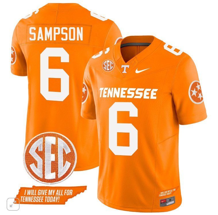Tennessee Volunteers Dylan Sampson #6 Vapor SEC Patch College Orange