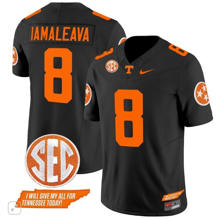 Tennessee Volunteers Nico Lamaleava #8 Home Vapor SEC Patch College – Black