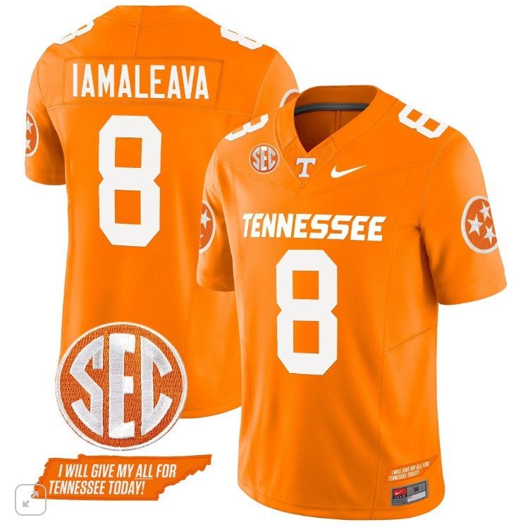Tennessee Volunteers Nico Lamaleava #8 Vapor SEC Patch Orange