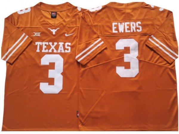 Texas Longhorns 3 Quinn Ewers Orange Football Jersey – Custom