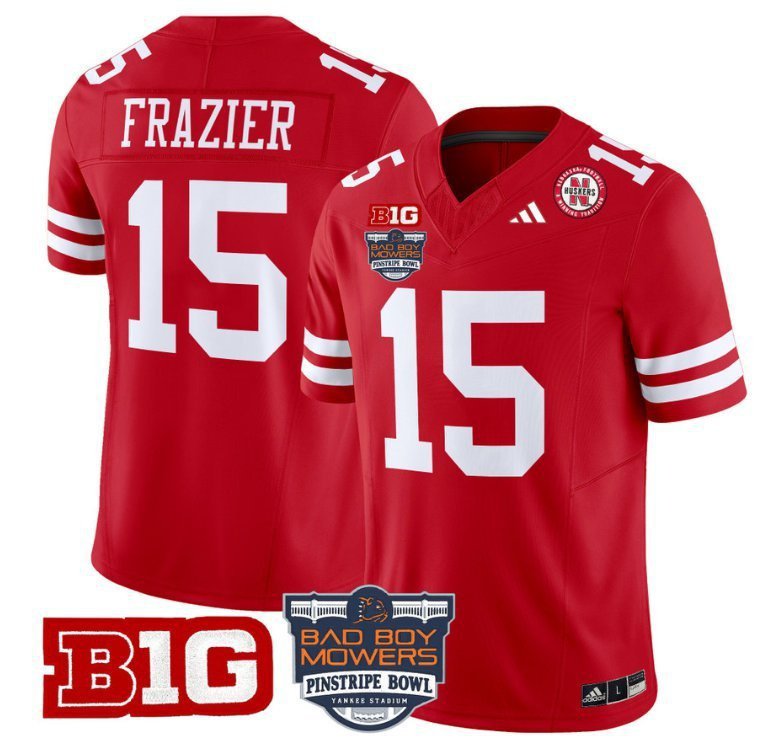 Tommie Frazier #15 Nebraska Cornhuskers 2025 Pinstripe Bowl B1G Patch Red