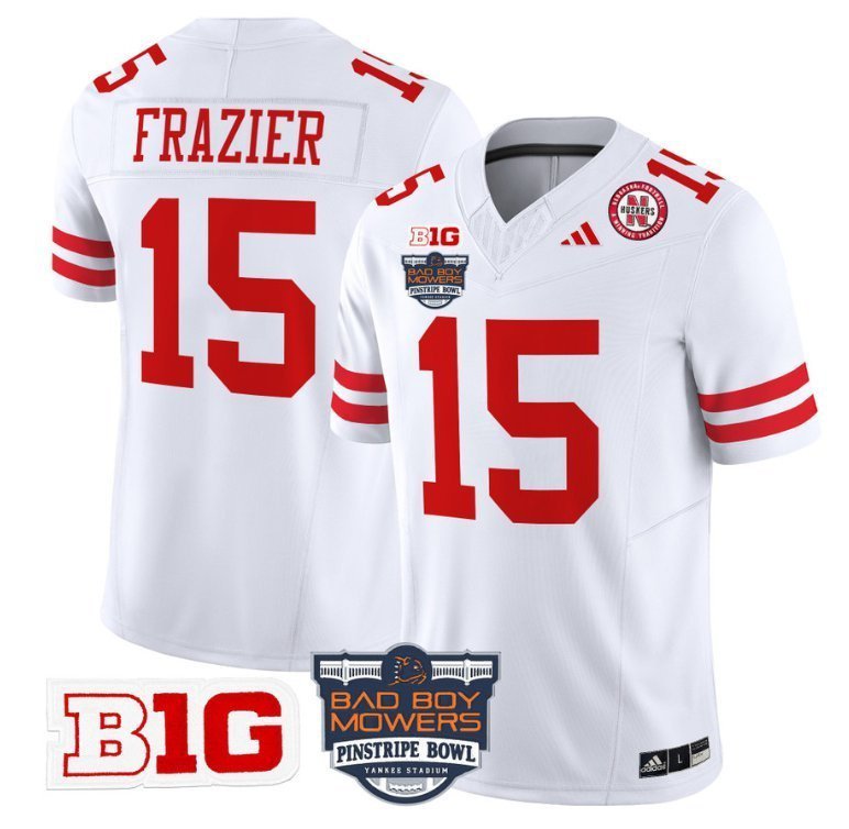 Tommie Frazier #15 Nebraska Cornhuskers 2025 Pinstripe Bowl B1G Patch White