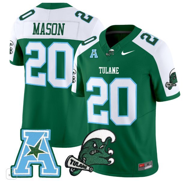 Tommy Mason #20 Tulane Green Wave Home Vapor Patch Green Alternate