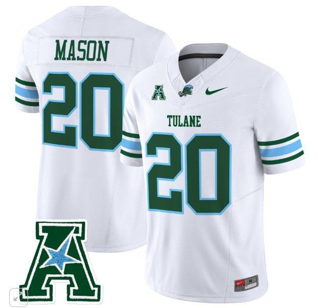 Tommy Mason #20 Tulane Green Wave Home Vapor Patch White