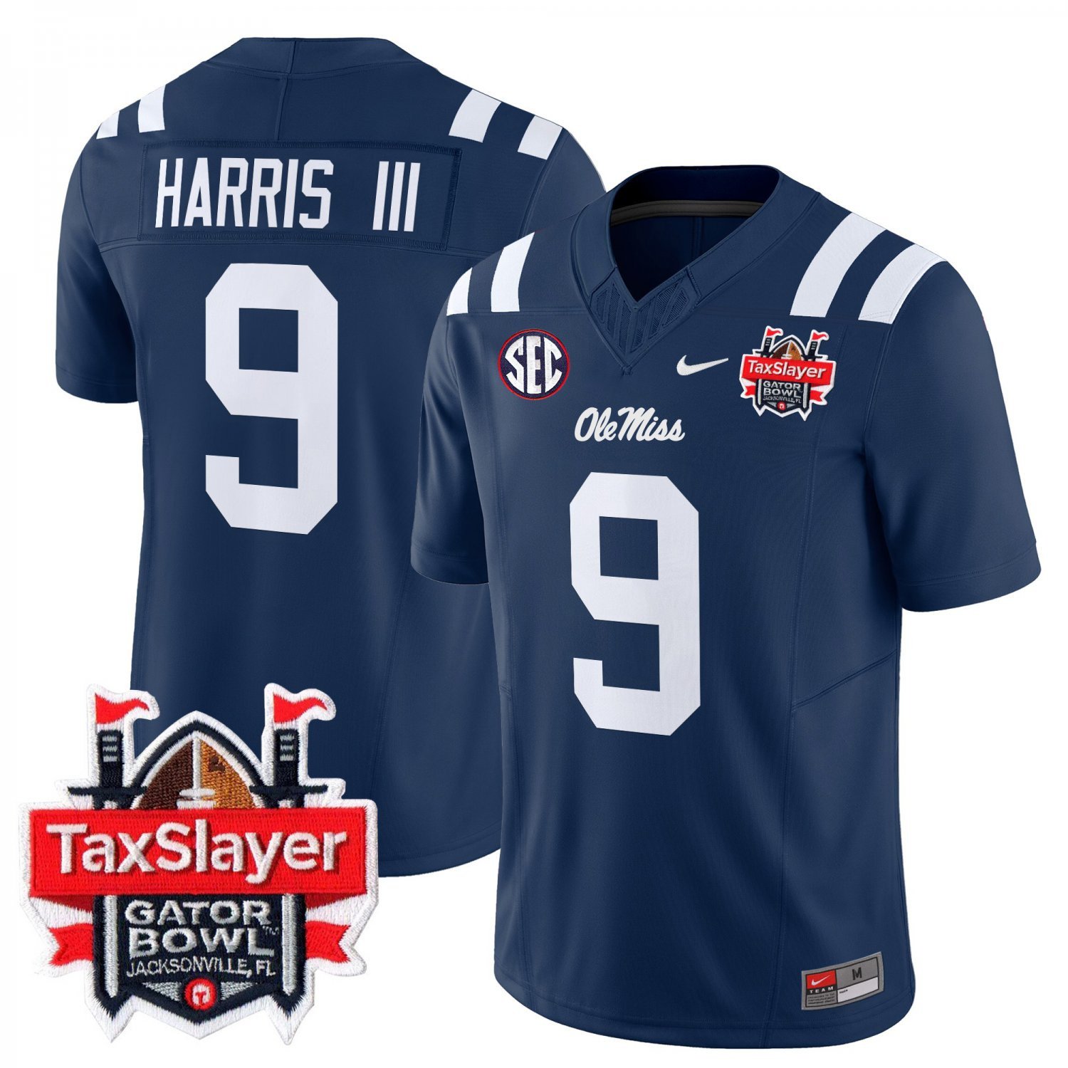 Tre Harris #9 Ole Miss Rebels Gator Bowl Patch Vapor Navy