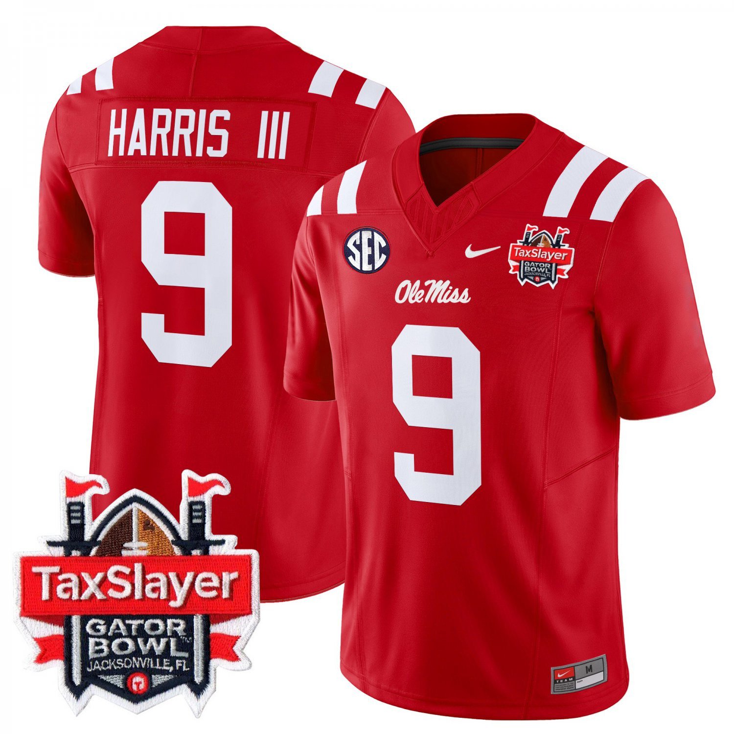Tre Harris #9 Ole Miss Rebels Gator Bowl Patch Vapor Red