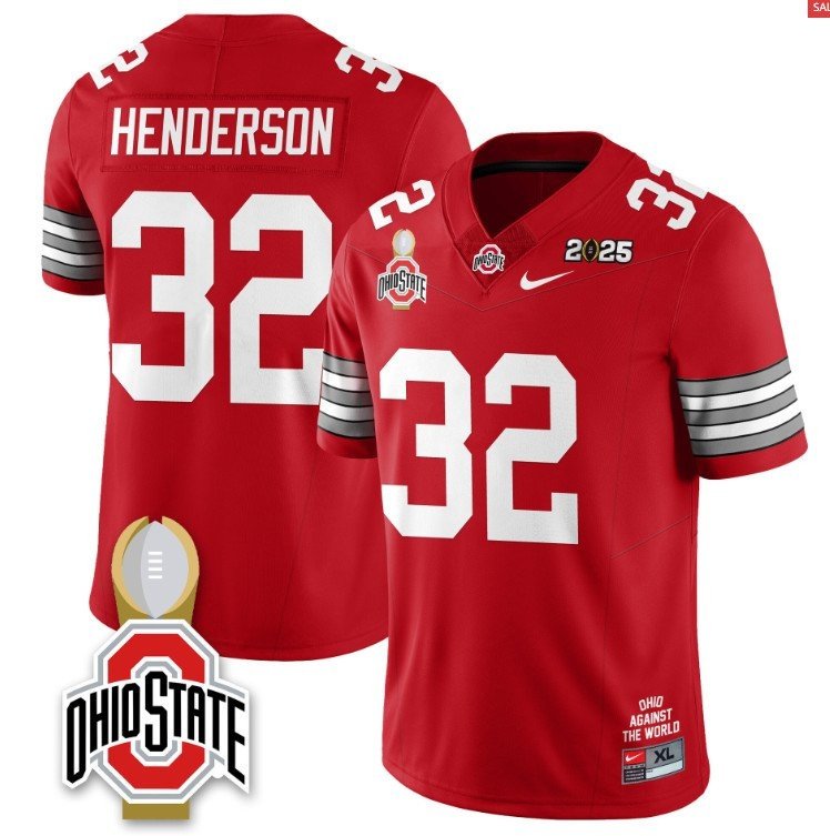Treveyon Henderson #32 Ohio State Buckeyes 2025 National Champions Red