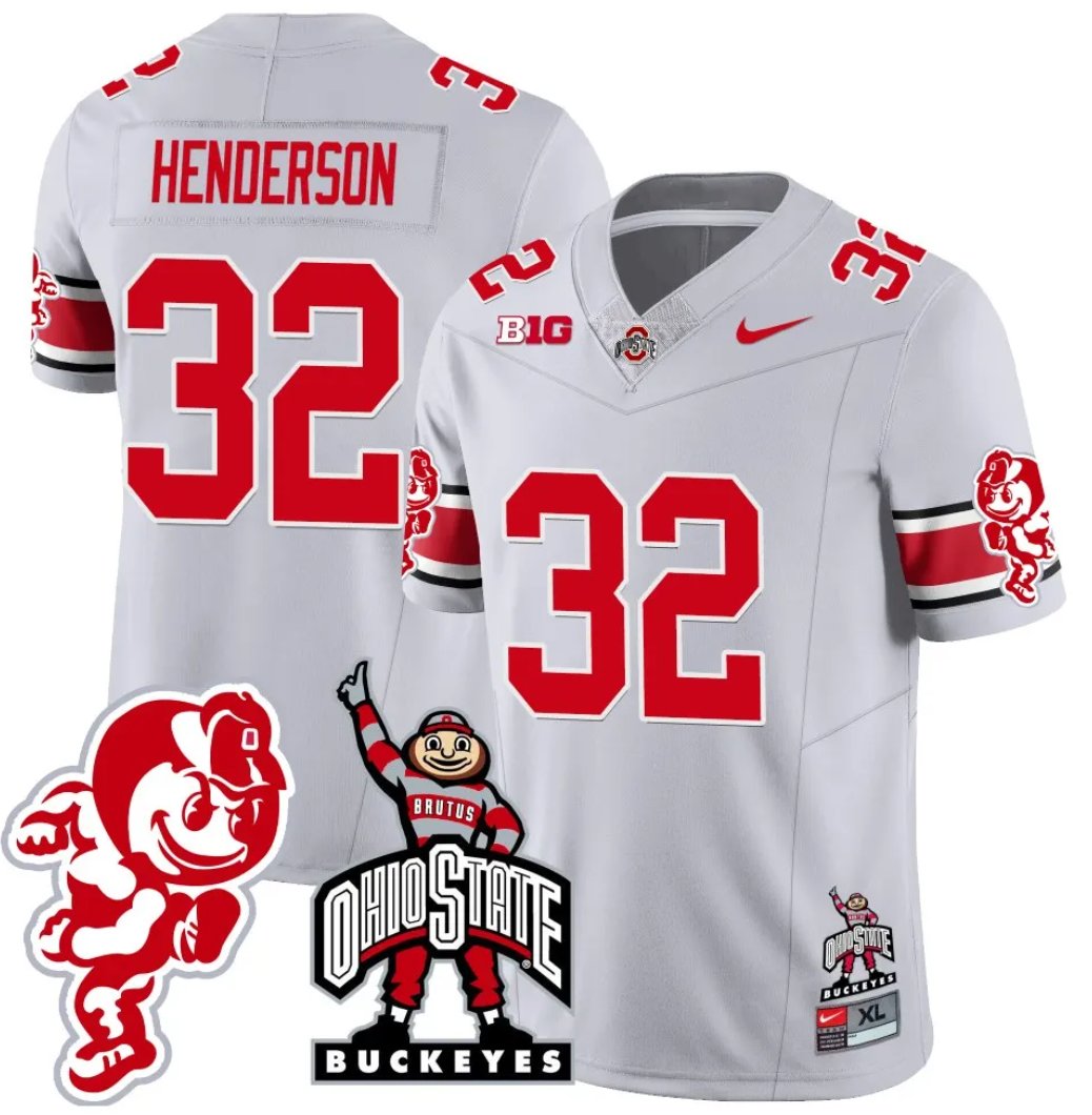 TreVeyon Henderson Jersey #32 Ohio State Buckeyes Football Stitched Brutus Buckeye Patch Gray