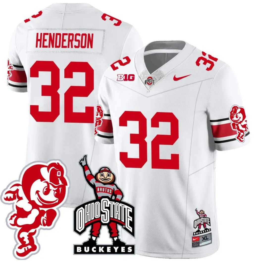 TreVeyon Henderson Jersey #32 Ohio State Buckeyes Football Stitched Brutus Buckeye Patch White
